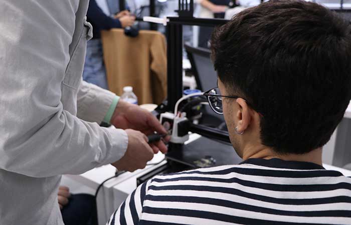 La sesión comenzó con una introducción general a la tecnología FDM y a su papel en los procesos de fabricación actuales. A partir de ahí, los alumnos se adentraron en el conocimiento de los principales componentes de una impresora 3D y en las consideraciones básicas que se deben tener en cuenta antes de ponerla en funcionamiento.